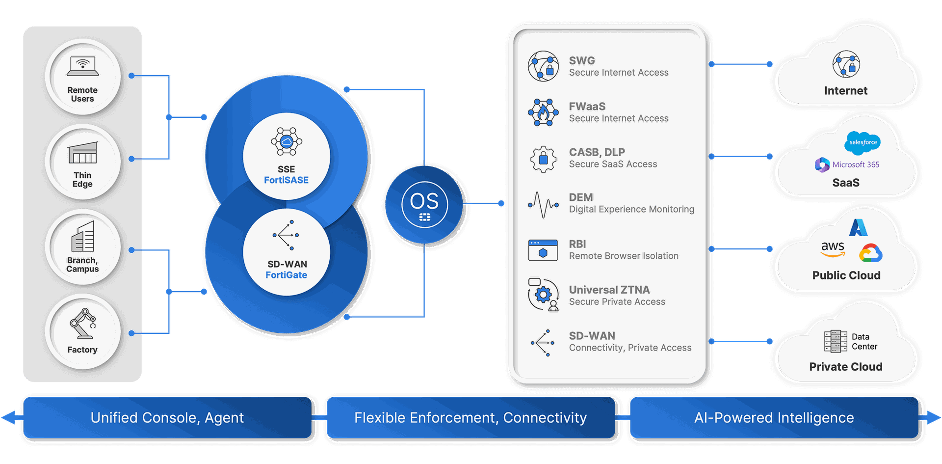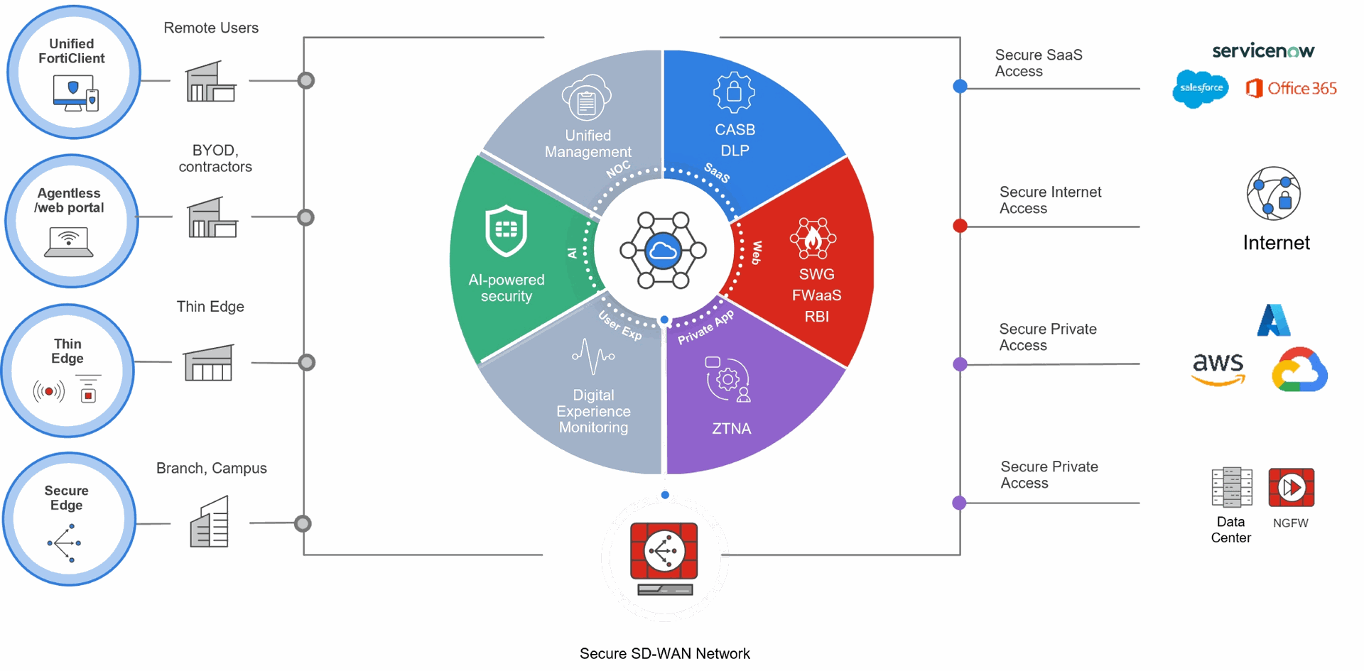 FortiSASE es la solución líder que unifica seguridad de nivel empresarial (Firewall como Servicio, Secure Web Gateway, ZTNA) y conectividad avanzada (SD-WAN) en una única plataforma entregada desde la nube.