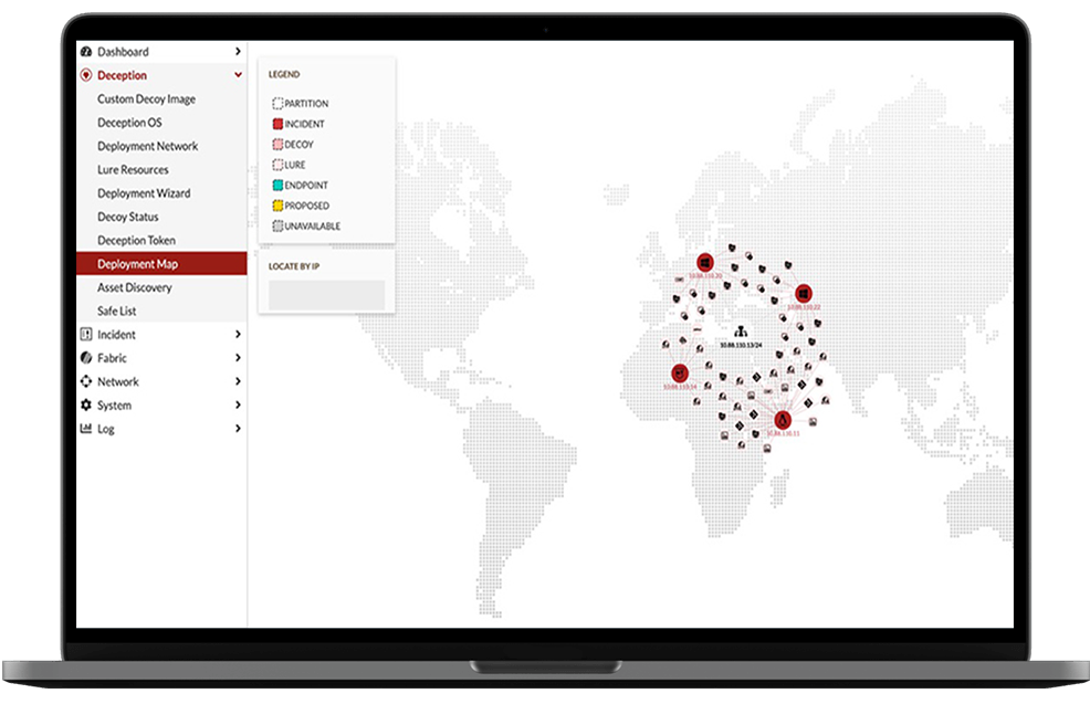 Utilizando las direcciones IP disponibles de la organización, los señuelos se ejecutan en la plataforma FortiDeceptor-as-a-Service alojada en la nube privada de Fortinet.
