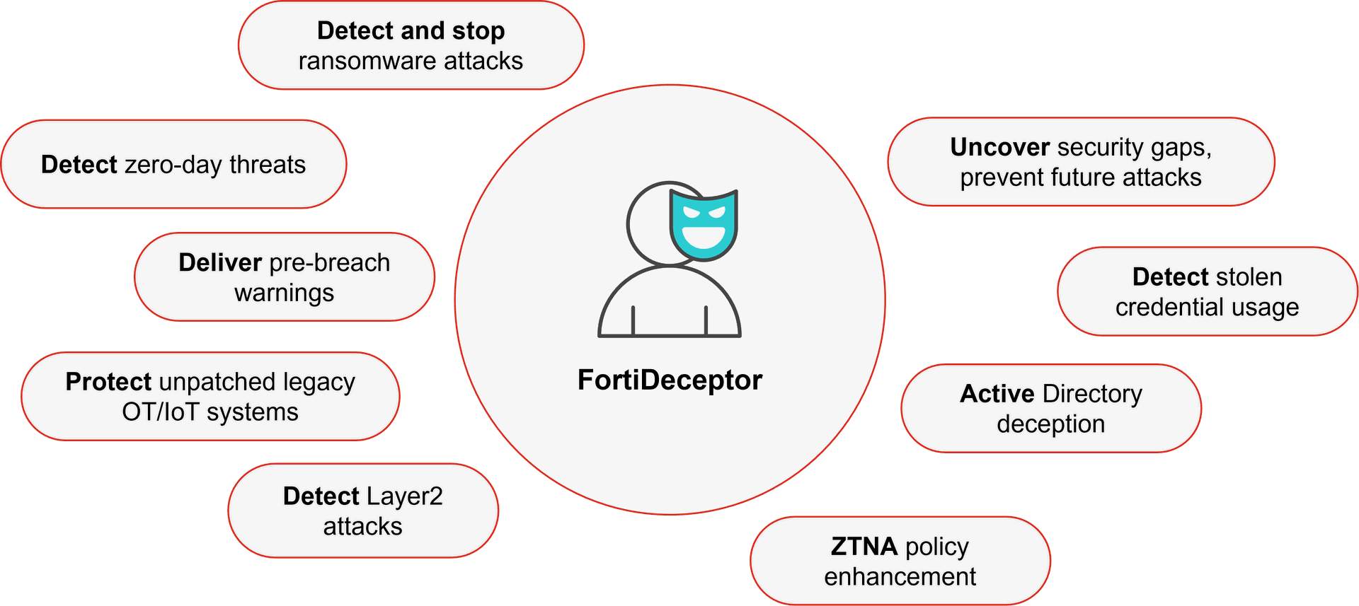 FortiDeceptor, parte de la plataforma Fortinet SecOps, detecta y responde a ataques internos en la red, como el uso de credenciales robadas, movimiento lateral, ataques man-in-the-middle (MITM) y ransomware.