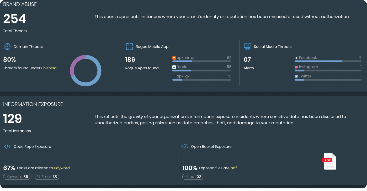 Además, permite identificar intentos de suplantación de identidad de la marca o de ejecutivos, aplicaciones móviles no autorizadas, filtraciones de datos en repositorios de código, exposiciones en buckets abiertos, campañas de phishing, y protege la reputación digital de los ejecutivos.