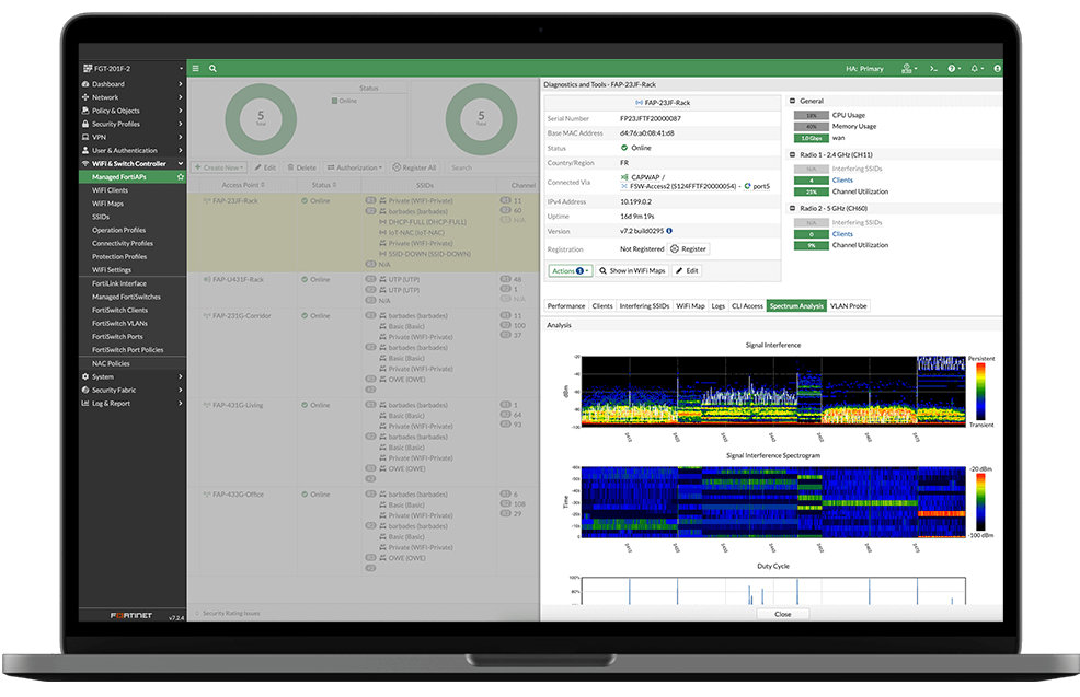 El equipamiento de red inalámbrica de Fortinet aprovecha la tecnología de Secure Networking para ofrecer acceso inalámbrico seguro en el borde de la red LAN empresarial. Nuestra solución se integra estrechamente con el Fortinet Security Fabric para brindar seguridad incorporada, visibilidad completa de la red y respuesta automatizada ante amenazas. Además, permite gestionar toda la red inalámbrica y la seguridad desde una única consola, reduciendo el tiempo y la complejidad de administración.
