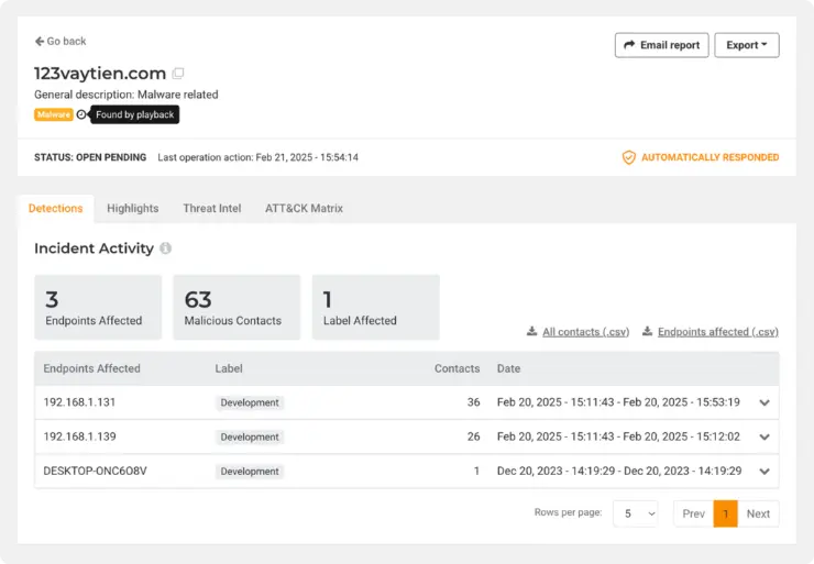 Cuando se implementa junto con Lumu Defender, confirme si la exposición externa está alimentando la actividad maliciosa en su red.